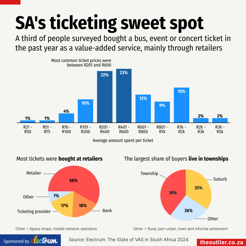 Ticketing is one of the value-added services that has shown the highest growth in usage by South Africans between 2022 and 2024, providing a significant opportunity to both banks and retailers offering this value-added service (VAS).
