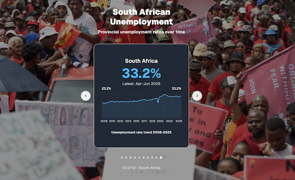 This week we made a provincial unemployment dashboard. The data comes from Stats SA and we already had the data stored in our data repository DataDesk. So we had a good starting point. I uploaded the data to V0.app, an online AI code generator, and described the tool I wanted to make.