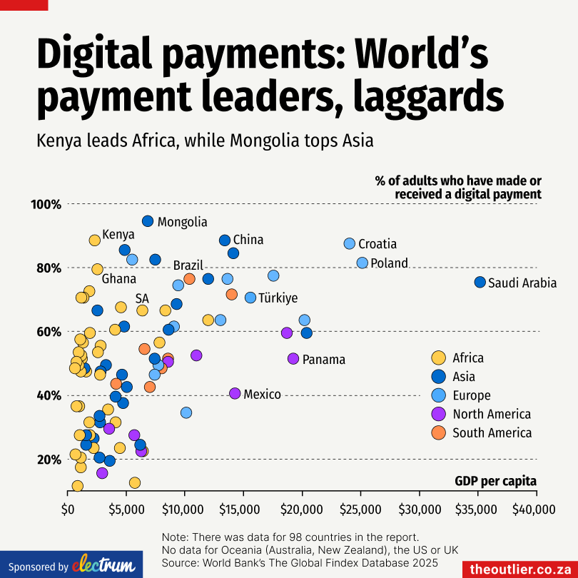 In Africa, 21 countries reported that over half of their adult population had made or received a digital payment in 2024, according to the World Bank’s Global Findex 2025 report. The report defines a digital payment as any payment sent from or received in a bank, financial institution, post office, or through a mobile money account.