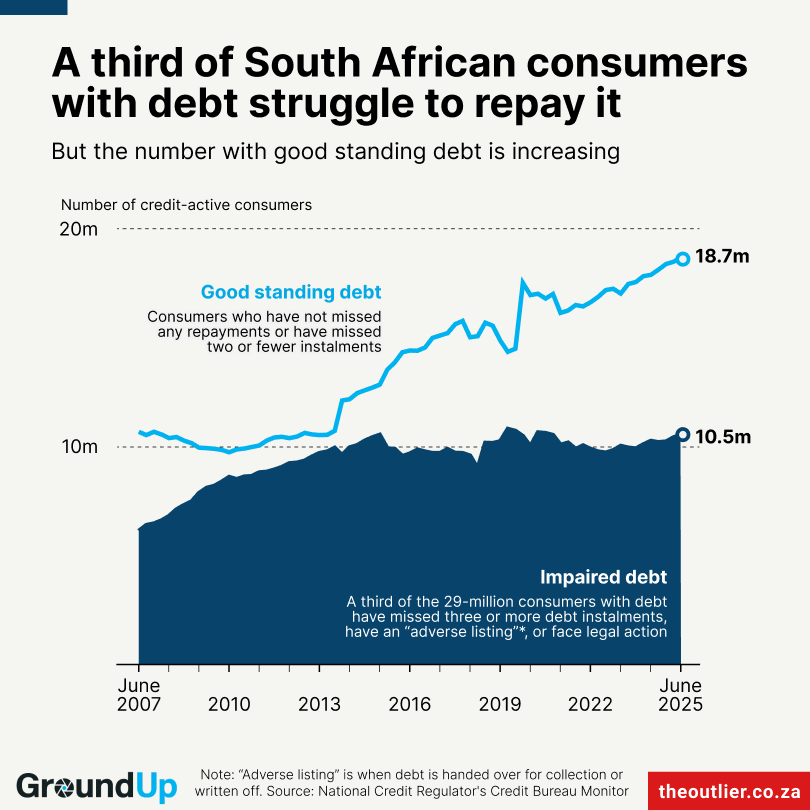 The number of consumers with impaired debt has increased from 9.9-million in 2022 to 10.5-million in 2025.