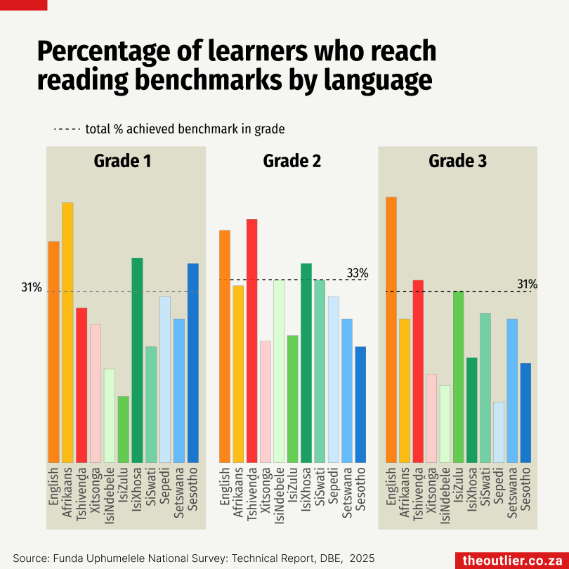 Teams of linguists and data analysts have researched the skills and markers that show how children learn to read in each of the 11 official languages. This helped to establish reading benchmarks for each of the foundation phase grades.