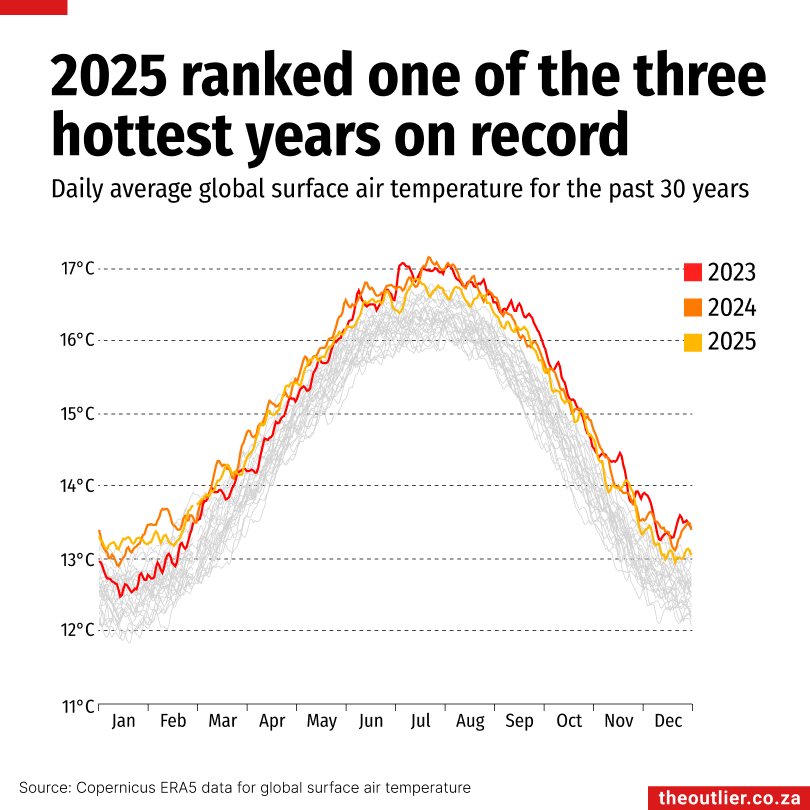 🥵 2025 was one of the three hottest years on record, even though the year began and ended with a La Niña event, which typically has a cooling influence. Scientists expect 2026 to be similarly warm.