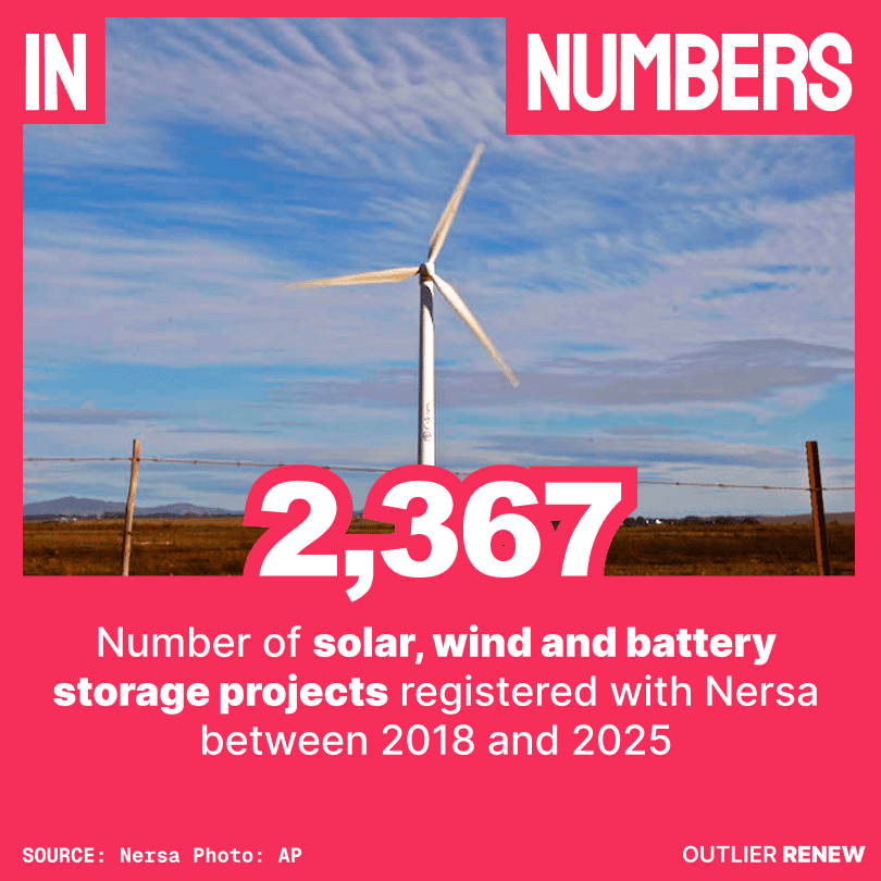 But there was a resurgence in 2025. Just over 600 projects described as solar PV, wind or battery energy storage systems, or combinations thereof, were registered, with a combined capacity of 7.5GW, according to the spreadsheet Nersa makes available to the public on its website.