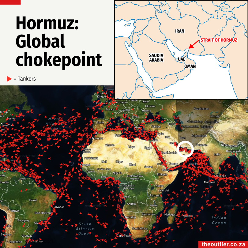 South Africa imports most of its crude oil from Nigeria and other West African producers, so it isn’t directly exposed to a Hormuz shutdown through crude supply. But the picture changes significantly when refined fuels are included: Gulf producers like Oman, UAE, Bahrain and Saudi Arabia, supply a substantial share of the diesel and petrol South Africa imports, much of it transiting Hormuz. Diesel alone accounts for about 67% of South Africa’s refined fuel imports.