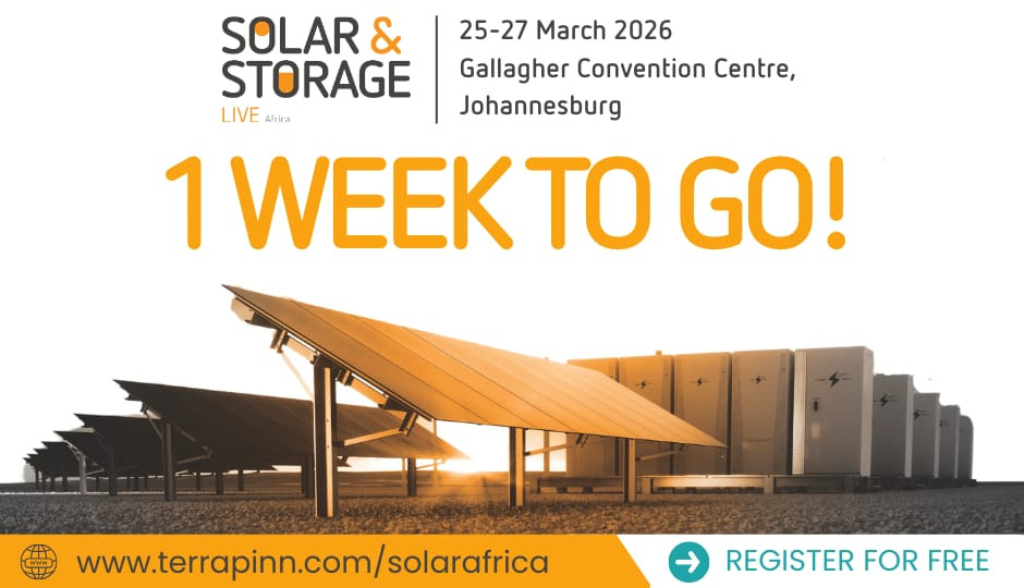 🔋 Solar & Storage Live Africa returns to the Gallagher Convention Centre from 25 to 27 March. The exhibition will feature more than 650 solution providers showcasing technologies across solar generation, energy storage, power electronics and smart energy systems. Alongside the exhibition will be a three-day conference. Outlier Renew is a media partner for the event. To register to attend the exhibition and conference for free, you can register here.