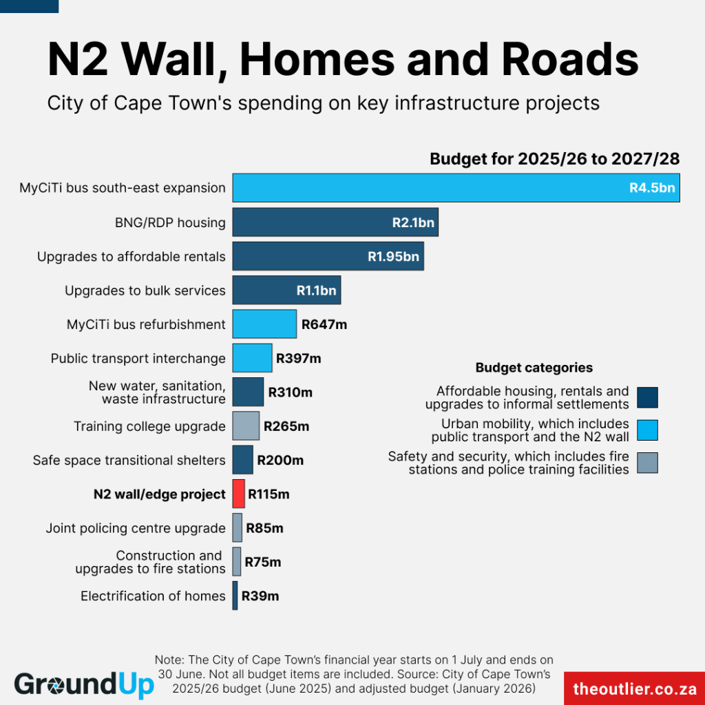 Our chart this week looks at how the hotly debated N2 Edge wall project stacks up against some of the City of Cape Town’s other planned infrastructure projects over the next three years.